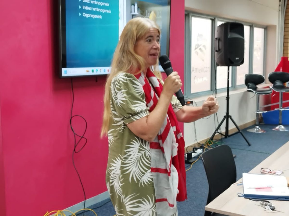 Agricultural specialist Dr Michelle McCubbin presented research on bamboo propagation through tissue culture, describing it as a critical method to strengthen seedling supply. She explained that bamboo flowers only once every 50 to 100 years, after which the plant produces seeds and eventually dies, making natural propagation unreliable.