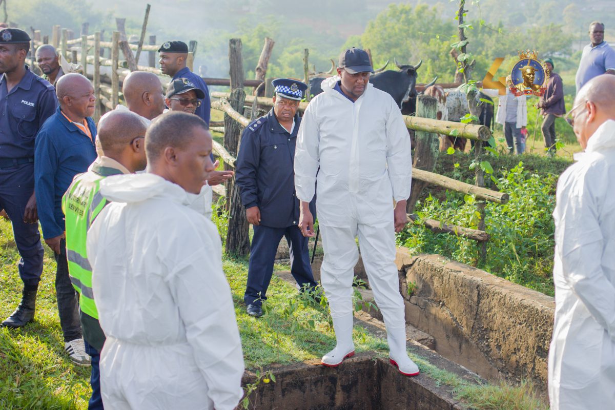 Dlamini, dressed in full protective gear, was briefed by Minister of Agriculture Mandla Tshawuka and veterinary teams on field operations, including correct vaccine administration techniques. Veterinary expert Dr Pride Shongwe demonstrated the importance of selecting precise injection points to ensure vaccine efficacy and animal safety.