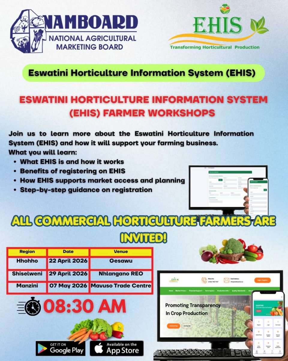 MANZINI – The National Agricultural Marketing Board (NAMBoard) has launched a nationwide series of Eswatini Horticulture Information System (EHIS) farmer workshops ahead of the start of mandatory registration on 1 May 2026, as the regulatory organisation prepares growers for compliance and wider use of the digital platform.